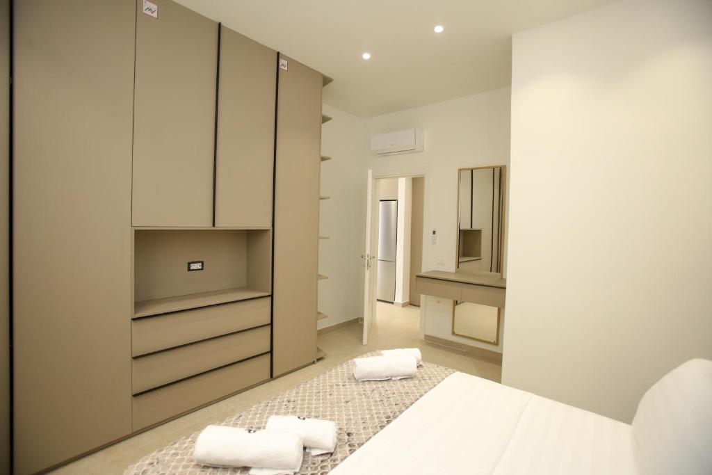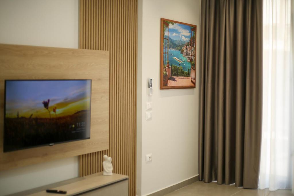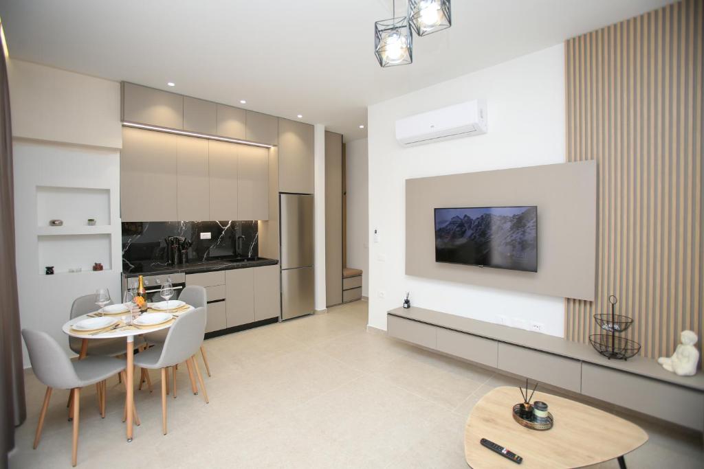 The apartment provides a washing machine, a coffee machine, a seating area, a flat-screen TV with streaming services,